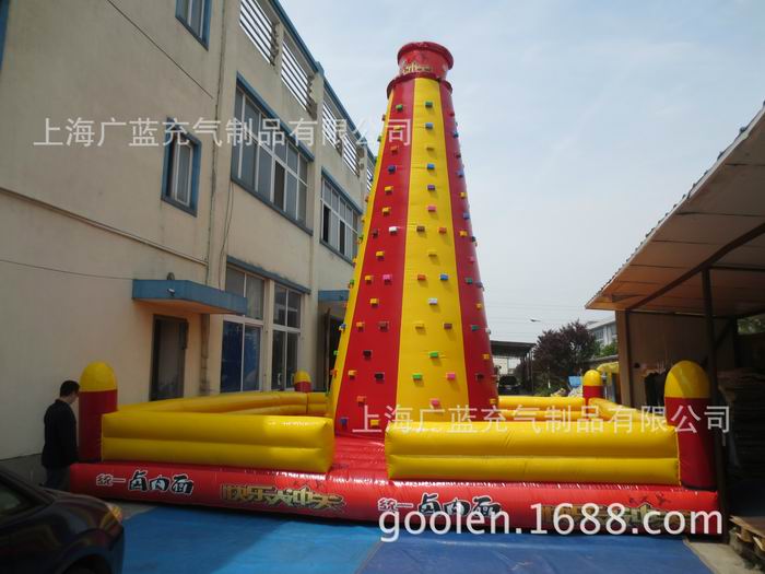 Inflatable rock climbing is a strong entertainment inflatable climbing software product line, its maximum height of up to 15 meters (in use to ensure structural stability and safety height can be appropriate to increase the premise) This product line shape is divided into three basic categories , respectively, cone type, class wall-shaped and cylindrical outer surface is usually set to climb the ladder, ladder, climbing nets, single rope pull, etc., as climbing conditions, but both have the same comprehensive security measures, such as artificial fall protection device (or automatic discharge device fall) and the lower part of the body has to match the safety cushion, the proper use of insurable safe. (Material 0.40mm-0.90mmPVC double laminated coating can be adjusted according to demand)