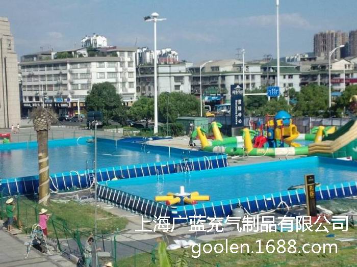 Bracket pool is a combination of steel and processing Fabric ether Ethylene pvc fabric made. The main support for the pipe, the pool body with pool dedicated for fine-sided PVC-coated nylon fabric and high-frequency welding hot forming. Having high tear (tear strength 400N, tensile strength 3478N / cm), abrasion, aging, beautiful appearance and easy setup, use of safe, clean, no special venue. Bracket Pool conventional rectangular shape, can also be based on site size, custom-made to adapt the size of the venue. General height of 60cm - 150cm, length and width dimensions in the range of 2x2m to 50x25m.