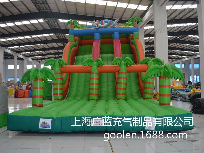 Inflatable slides, are made of high-strength PVC tarpaulin or higher bouncy castle toys material, filled with gas by the blower expansion shaping rides for children's entertainment, children or by climbing through a special channel after the slide the upper slide down, by climbing to carry out recreational activities, children playing with inflatable slides require strong will and confidence to play slide can cultivate children's courage in the game, satisfying and will improve the children's confidence and be able to enjoy success joy. This series of products commonly used raw materials for the 0.40mm-0.90mmPVC double-coated sandwich mesh. (Can use other materials and thickness according to the actual needs of customers) In addition, this series of the shape and size of the case without damaging the basic categories function and stable weight distribution and center of gravity can be reasonably reduced or increased, colors and patterns and other peripherals can be according to your preference freedom of choice. Also available according to customers pictures, drawings and 3D renderings production processes, (which can also be according to our customers' specific design renderings and creative ideas to get the customer to confirm the line after manufacturing production).